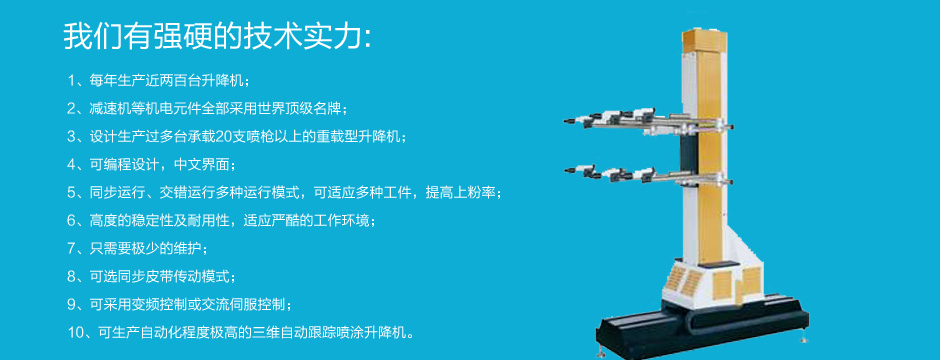 力恒機電設備有限公司是一家以生產涂裝設備為主要業務的公司.主營行業:靜電噴粉設備;熱潔環保爐;(碳化爐);數字智能升降機(往復機);氟碳噴涂設備;小旋風二級回收噴房;大旋風二級回收噴房;魔術快速換色噴房;背包式單極回收噴房;水簾噴漆柜;全自動噴粉設備...